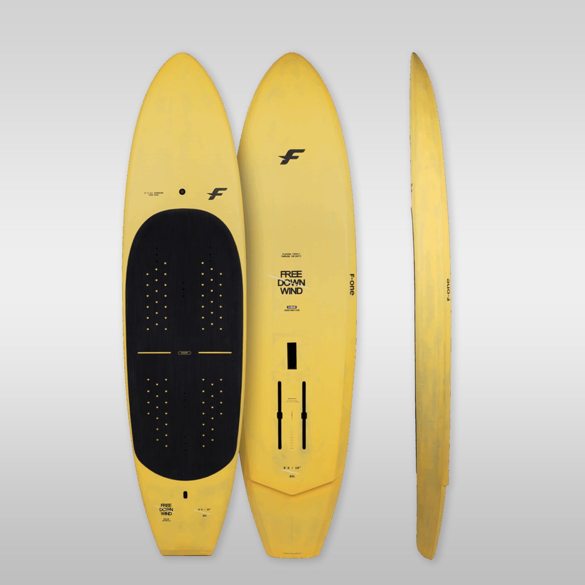 Im Vergleich zum Free Surf ist das Free Downwind das stabilere Board mit mehr Dicke, breiterer Nose, größerer Unterseite und kantigeren Rails. Der Fußdruck liegt leicht weiter vorn, ganz im Stil der klassischen F-ONE Boards. Es wurde für Rider entwickelt, die Stabilität und einfache Take-offs bevorzugen, auch bei anspruchsvollen oder chopy Bedingungen.